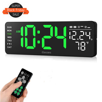 12.5 인치 대형 디지털 벽시계 자동 조광기 리모컨, 날짜, 실내 온도, DST와 함께 LED 벽시계 큰 디스플레이 읽기