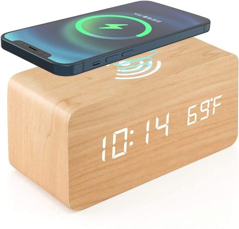 15W 나무 제나라 고속 무선 충전기 디지털 시계 우드 제나라 무선 충전기 알람 시계 충전 시계